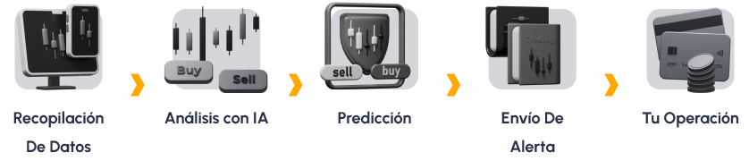 Las señales de negociación de IA son alertas automáticas generadas por algoritmos avanzados. Estas señales analizan las tendencias del mercado, los movimientos de los precios y los datos históricos para identificar oportunidades de negociación rentables en tiempo real.